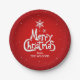 Personalised paper plates for your Christmas party featuring white typography and snowflakes on red. Personalise these fun plates with your name or custom text!