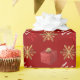 Festive personalised Christmas holiday wrapping paper design with gold winter snowflakes and red glitter Xmas present and red ribbon bow on a plain green customisable background, personalise this design by adding your family name or Xmas text greeting and adding your favourite family photo. PLEASE NOTE the gold is not metallic.
