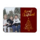 Golden yellow Merry Christmas in script font with a golden abstract Christmas tree set on solid deep red in this sophisticated design. Upload your own vertical portrait photo.