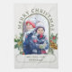 Merry Christmas Photo Holly and Pine Personalised Tea Towel
