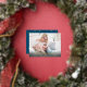 "Merry Christmas" or your message on front in gold foil with gold foil border. Add your photo, name, year and message on back. Back has white script text and gold stars on ocean blue background.