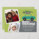 A modern Holiday greeting with an illustration of a car moving gifts and a tree.