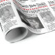 Extra Extra read all about it. This design features a Christmas gift wrap, with a photo template, a simple minimal, red and white, cute funny design with candy cane stripes, and a newspaper newsletter, minimalist, whimsical, with holiday wrapping paper