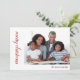 This elegant holidays design features the text "Merry Christmas" and family name in modern red script. Add your favourite photo to create your personalised Photo Christmas Cards. Personalise by editing the text in the text box provided. The reverse is a chic burgundy with gold stars.
