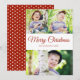 Red and white polka dot 3-photo collage "Merry Christmas" holiday greeting card. Red text is a beautiful and elegant calligraphy script font.