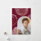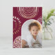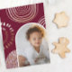This beautiful Christmas card features a vibrant burgundy red print with circular geometric shapes and a modern arch shaped photo. The back features an editable personal message on a white background.