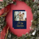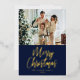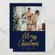 Merry Christmas Picture Navy Blue Modern Gold Foil Holiday Card