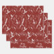 Merry Christmas Pine Berries Pattern Red Wrapping Paper Sheet