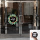 A watercolor wreath of pine branches, berries and greenery and the words - We Wish You a Merry Christmas and a Happy New Year (or any text) are featured on this window cling - Choose ANY SIZE and **front or back cling. (Size shown is 24" x 24", but can be made larger or smaller.)