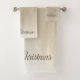Merry Christmas, pine tree branches with balls and snowflakes make this perfect Christmas bath towels for friends and family.