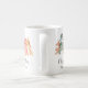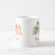 Simple and elegant holiday mug featuring a watercolor abstract of pine trees in muted sage green, red, gold and orange and "Merry Christmas" in a stylish script. Add your name in modern typography or leave blank.