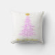 Merry Christmas in gold cursive text. Fun pink Christmas tree with star made from implied line edges, and curvilinear swirls. Crisp white background. Perfect for the holiday season, or Christmas in July. Original graphic design.