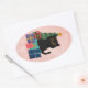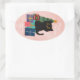 Merry Christmas Pink Cute Black Cat Christmas Tree Oval Sticker