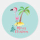 Merry Christmas Pink Flamingo With Palm Tree Classic Round Sticker