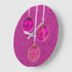 Merry Christmas Pink Glitter Baubles Elegant Large Clock
