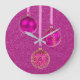 Merry Christmas Pink Glitter Baubles Elegant Wall Clock