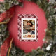 Merry Christmas Pink Red Plaid Tartan Photo Foil Holiday Card