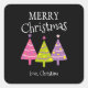 Merry Christmas Pink Trees Custom Square Sticker