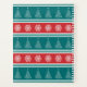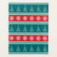 Merry Christmas illustration with Christmas tree and snowflakes decoration on red, white, blue and turquoise striped background