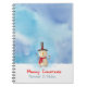 A notebook with a cute snowman illustration. He is wearing a black stovepipe hat, holding a classic corn cob pipe, and wearing a red scarf. Standing in the cold white snow smiling and waving hello. The background is composed of a watercolor sky with blue and purple colours blending and mingling together. Text says Merry Christmas in a cute red font. Customised text says Planner & Notes, which you can leave as is or replace with your own text.