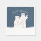 Tiny white star pattern on winter blue background with white Merry Christmas text and cute polar bears.