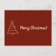 This postcard presents a classic and elegant design to send your festive greetings this holiday season. The front displays a minimalist Christmas tree, outlined in a delicate white that subtly contrasts with the rich, deep red background, capturing the traditional colours of the holiday. Atop the tree sits a bright star, leading down to the tree's base, creating a simple yet poignant symbol of Christmas cheer.