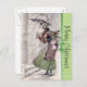Merry Christmas Postcard with Vintage Lady in Snowstorm.
