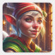 Cute female elf outside on a snowy night Merry Christmas stickers.