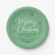 Merry Christmas Pretty Green Wreath Custom Party Paper Plate