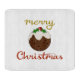 'Merry Christmas' in faux gold colour and red script with illustration of a Christmas pudding with holly centre.