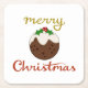 'Merry Christmas' in faux gold colour and red script with illustration of a Christmas pudding with holly centre.