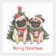 Merry Christmas Pug Dogs Square Sticker