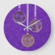 Merry Christmas Purple Glitter Baubles Elegant Large Clock
