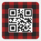 QR Code reading Merry Christmas on a red and black buffalo plaid pattern.