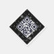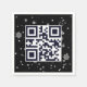 Black and white QR Code reading Merry Christmas on a black background with scattered snowflakes.