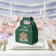 This cute custom green realtor Merry Christmas party favour box has your personalised realty company name and holiday message in chic green typography along with a beautiful image of a house in the winter surrounded by pine trees. Professional holiday gift boxes for a real estate business.