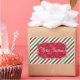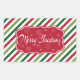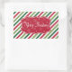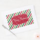 Merry Christmas illustration with text and snowflakes design on red, white and green striped background
