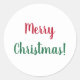 Merry Christmas Red and Green Script Typography Classic Round Sticker