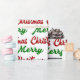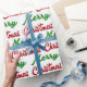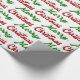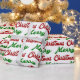 Wrapping paper with Merry Christmas in 3D green and red text. Available in several styles and sizes.