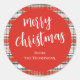 This design features a Merry Christmas calligraphy script sticker with cute whimsical fun festive simple, a sylish trendy calligraphy script,winter red and green plaid, a christmas holiday gift favour label, a rustic vintage country farmhouse, with a rustic winter holiday plaid pattern, a Christmas holiday treat candy packaging, with custom customised personalised template, with white calligraphy script font