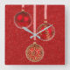 Merry Christmas Red Glitter Baubles Elegant Square Wall Clock