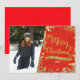 Merry Christmas Red & Gold Modern Photo Holiday Card