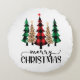 Merry Christmas Red Green Black Plaid Trees Round Cushion