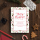 This design features a Merry Christmas whimsical party cute invitation with a stylish trendy calligraphy script font and a scannable QR code to share your party details, information, and details via your URL or link. Red and green typography lettering, pinecones greenery foliage leaves leaf, with botanical simple holly berry berries, a simple minimalist design pattern minimal, creative simplistic unique whimsy, stylish creative elegance elegant fun, classic fancy filigree swirly swirl, cute simple holiday party invite