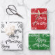 Merry Christmas red, green, black and white custom script calligraphy typography pattern elegant gift Wrapping Paper.