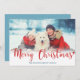 Merry Christmas Red Modern Script Photo Blue Holiday Card