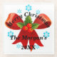 Merry Christmas Red Ribbon Holly Berry Glass Coaster