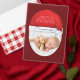 Celebrate the holiday season with this adorable Santa hat-themed "Merry Christmas" card. Featuring a cosy photo slot framed by a festive red Santa hat design, this card is perfect for sharing your favourite Christmas photo with family and friends. The classic typography and warm colours make it a timeless choice for holiday greetings. Part of a coordinated collection, this design is available with matching gift tags, envelopes, and other stationery to complete your holiday set. Ideal for families looking for a trendy, heartwarming way to introduce their newest addition during the holidays.