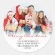 Merry Christmas Red Script Family Photo Address Classic Round Sticker