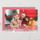 Simply chic holiday photo greeting card features "Merry Christmas" in a modern beautiful script with scrolling detail in Red. Red diagonal stripes add interest to the back of the card - use "customise it" to edit the red background colour.